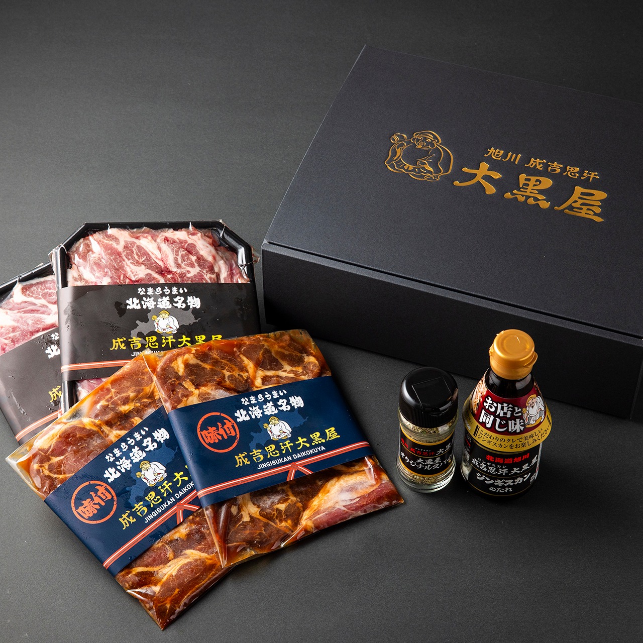 肩ロース190g×2パック/肩ロース(味付)190g×2パック/ジンギスカンのタレ1本/大黒スパイス1本