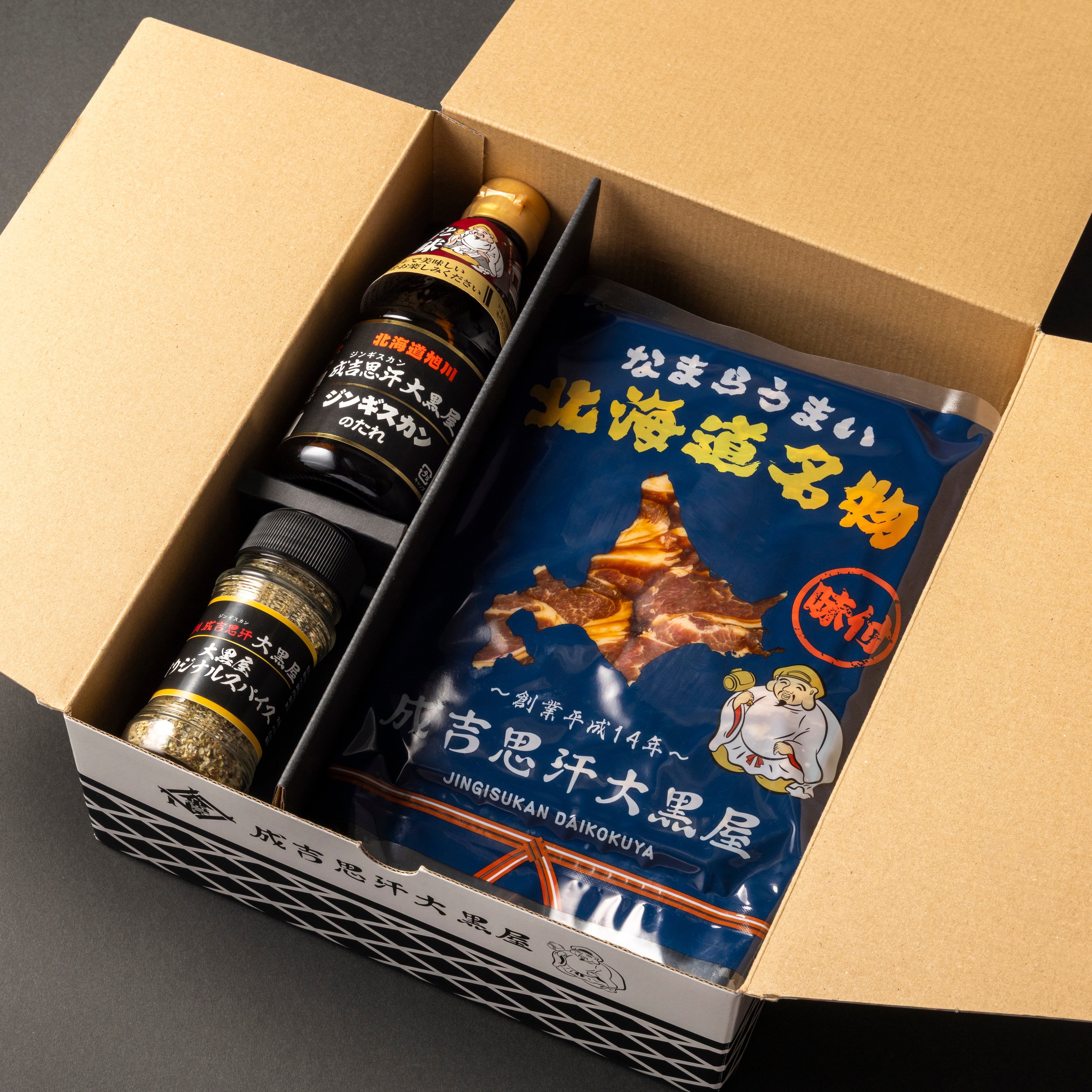 肩ロース200g×2パック/味付ジンギスカン250g×2パック/ラムロール250g×1パック/ジンギスカンのタレ1本/大黒スパイス1本